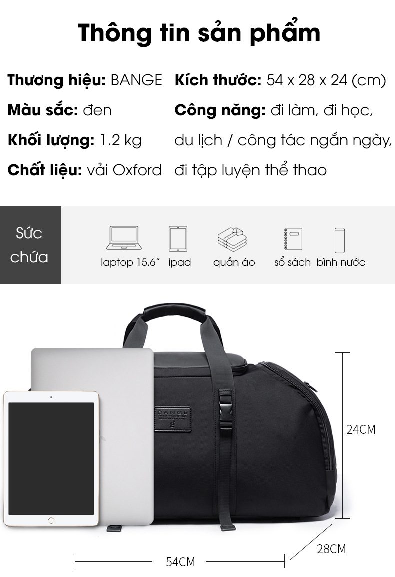 Túi Du Lịch/ Balo Đa Năng For Travel/ Business/ Gym BANGE JOYMAN