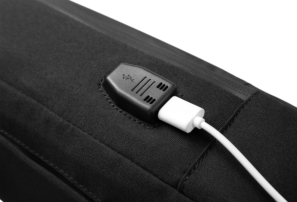 Điểm đặc biệt của mẫu balo này là được thiết kế thêm cổng sạc USB dùng để dự phòng những khi bạn phải sử dụng điện thoại hay một số thiết bị điện tử khác khi đang đi ngoài đường. Thật đơn giản và tiện lợi, vừa đeo balo vừa dùng điện thoại, xóa tan nỗi lo điện thoại hết pin.