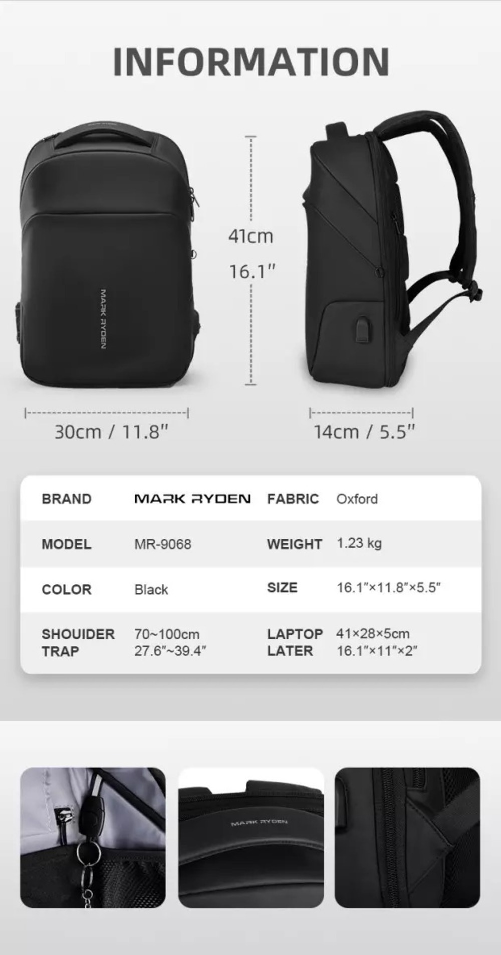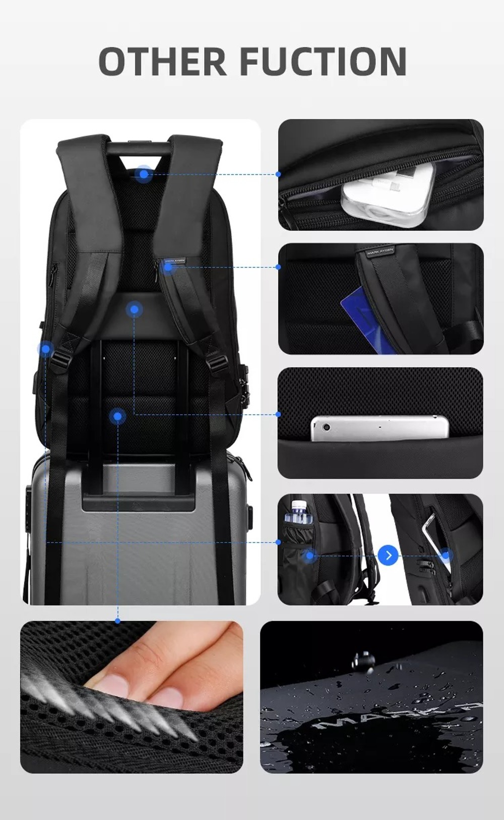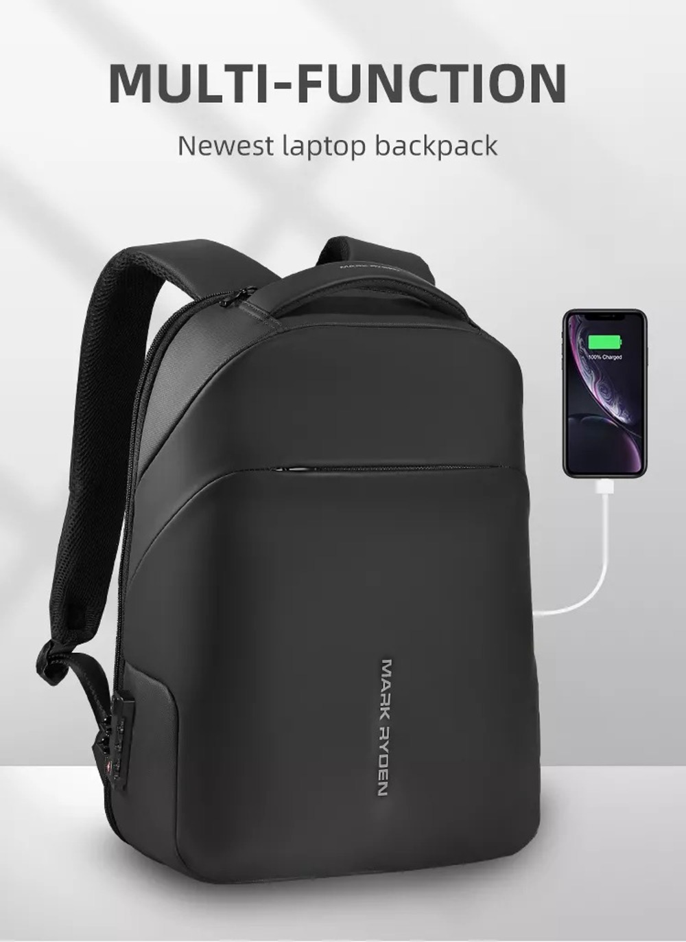 Balo Chống Trộm, Thiết Kế Đẳng Cấp, Công Nghệ Mới Nhất, Tích Hợp Áo Mưa+Khóa số TSA+Cổng USB, Fix Laptop 15,6" MARK RYDEN DELTA