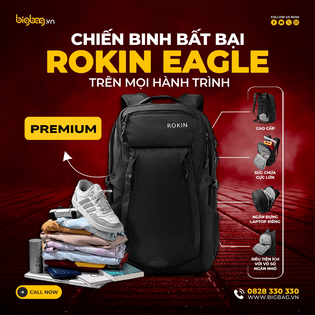 => Tuy nhiên Anh/chị hoàn toàn yên tâm, vì trong hàng trăm ngàn sản phẩm mà BigBag đã phân phối gần 15 năm qua, thì chiếc Balo Rokin Eagle là balo cao cấp nhất mà shop từng phân phối, Anh/chị đến shop trải nghiệm sẽ mê mẫn ngay lập tức chiếc Balo Đa Năng này!!!