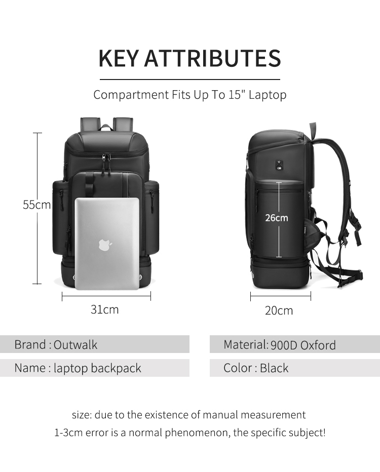 Balo Du Lịch Đa Năng, Siêu Tiện Ích, Cổng Sạc USB, Ngăn Giày Riêng, Fix Laptop 17,3 inch OUTWALK BIG TRAVEL