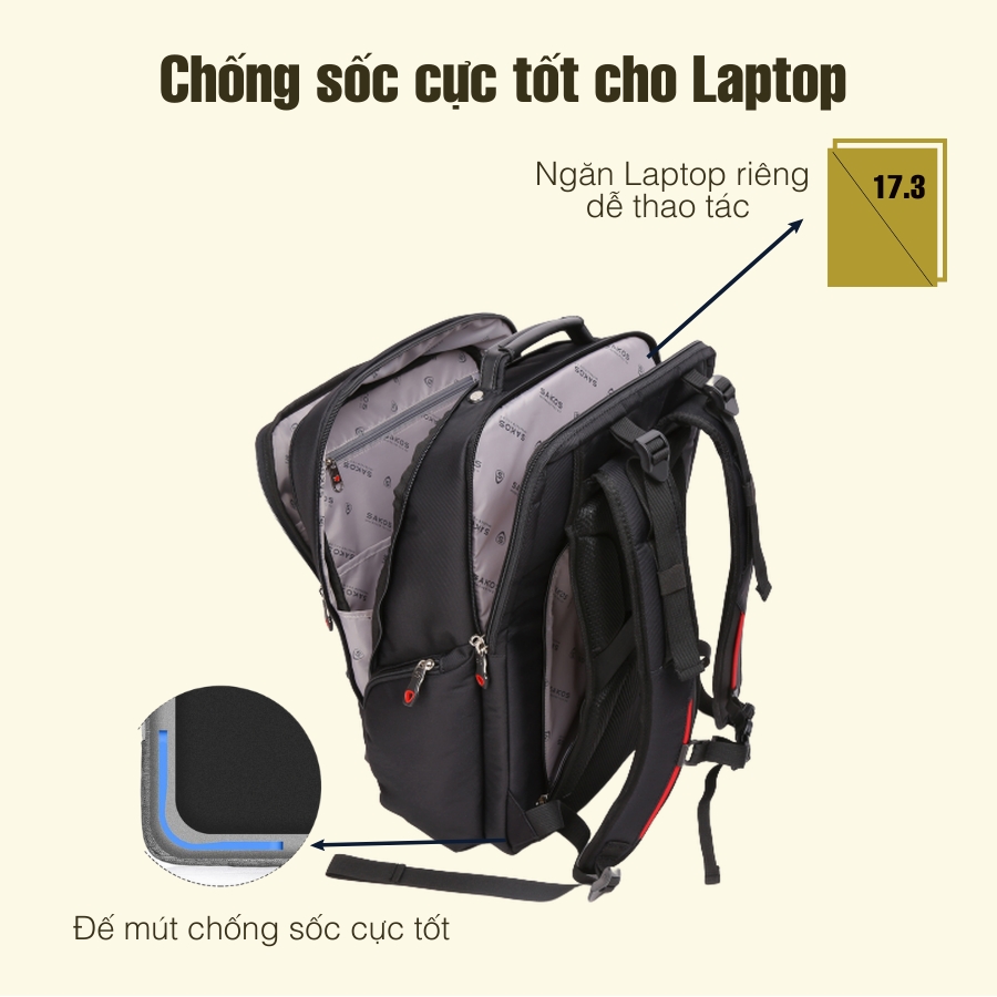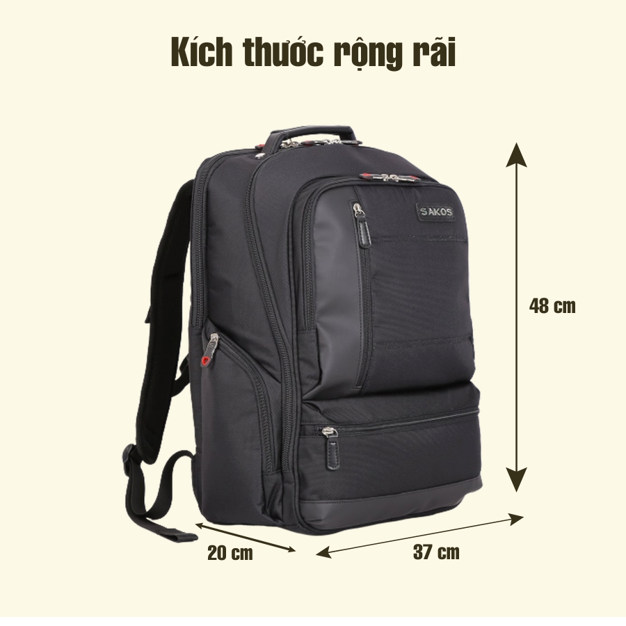 - Balo laptop Sakos Ultra thiết kế với khả năng lưu trữ lớn, chất liệu dày mang đến vẻ chắc chắn, bền bỉ, có ngăn riêng chống sốc tuyệt đối tránh va chạm dành cho laptop 17 inch rất phù hợp cho sinh viên, dân công sở, kỹ sư...