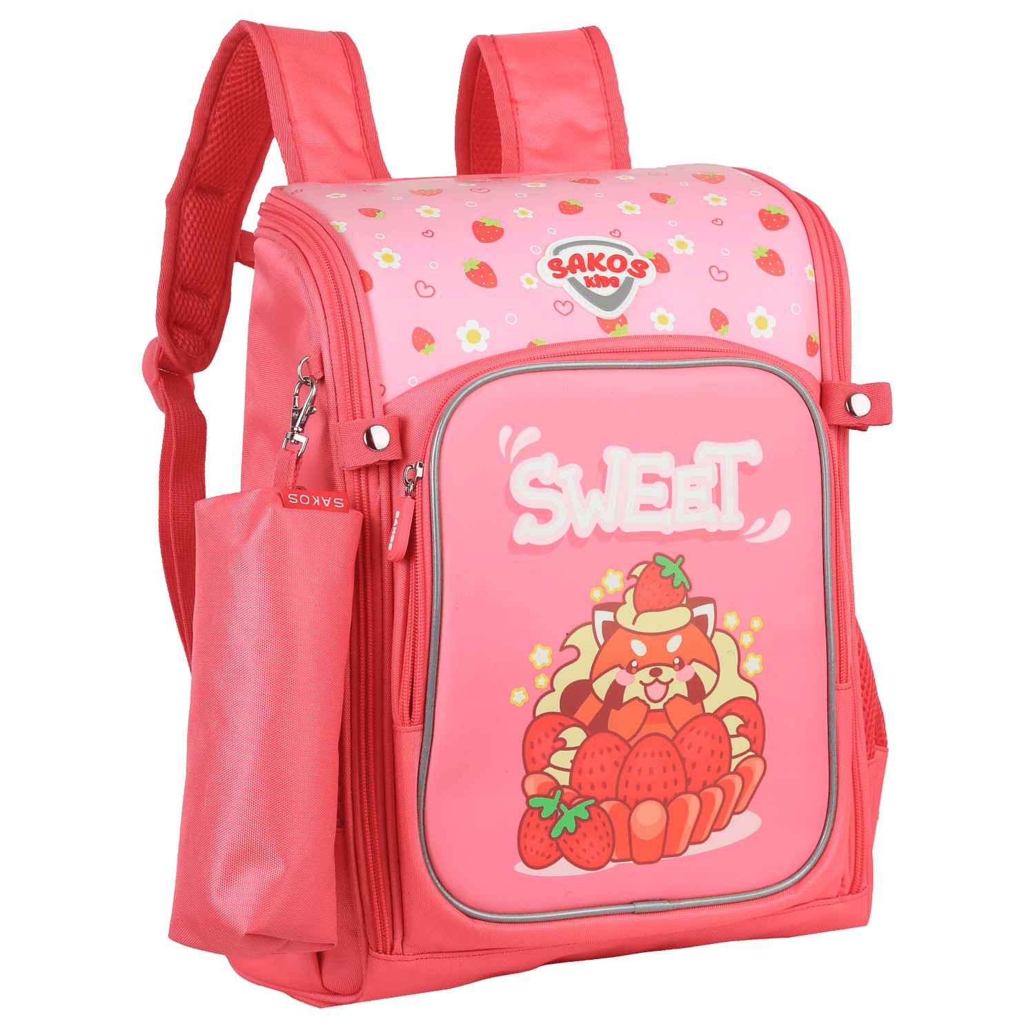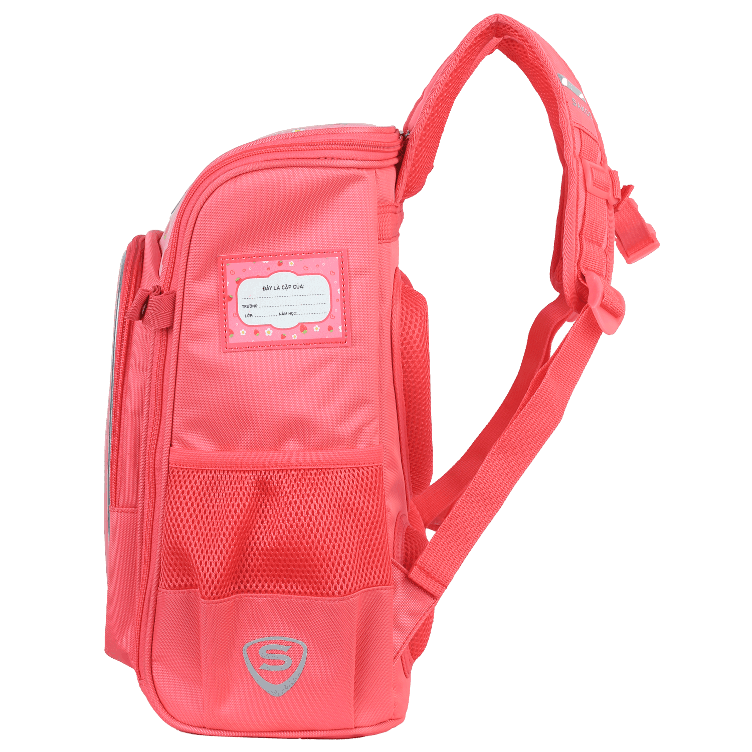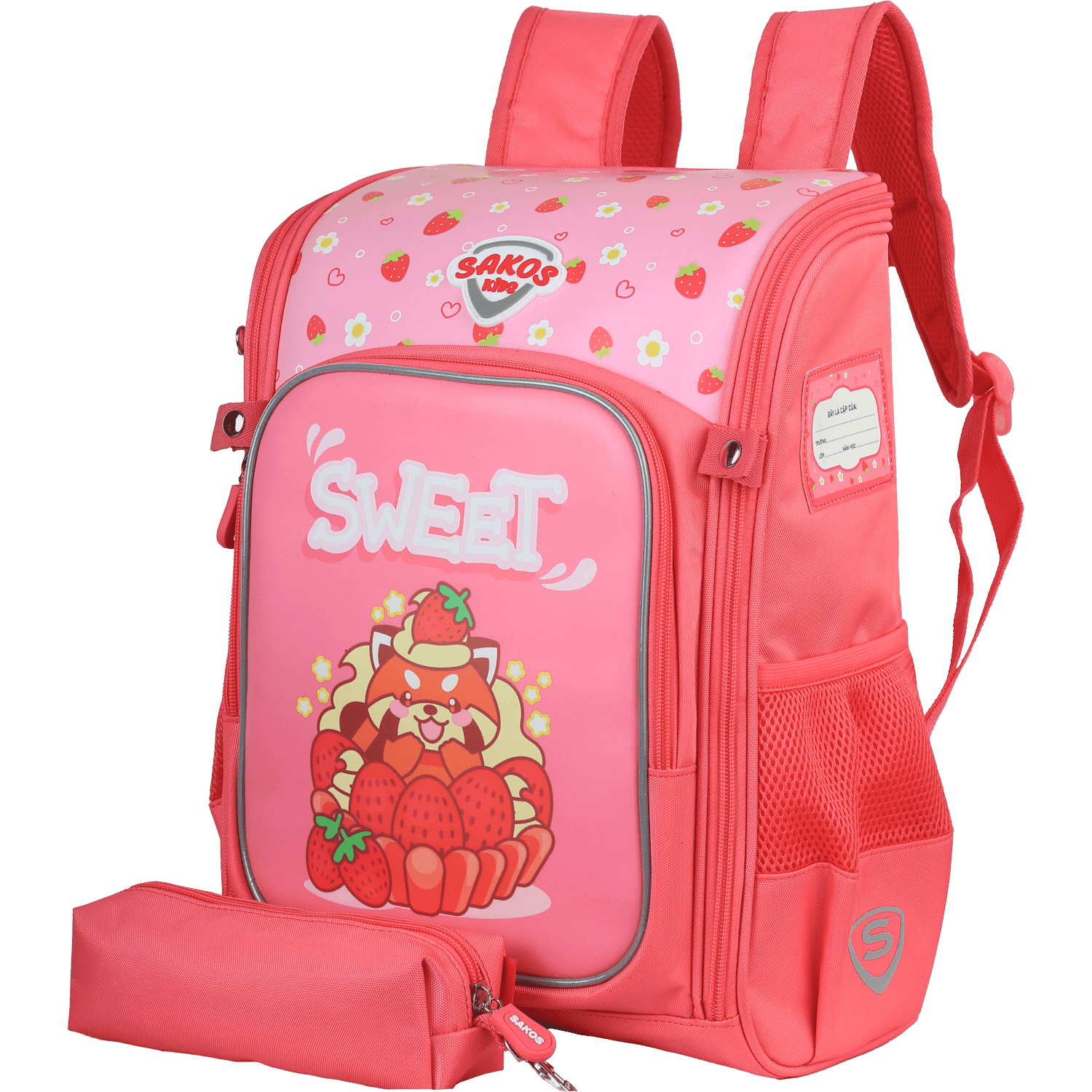 Balo học sinh Sakos Kid Bingo gồm 4 phiên bản được thiết kế với màu sắc tươi mới, ngọt ngào kết hợp với những nhân vật đáng yêu để kích thích sự sáng tạo và niềm vui khi đến trường của các bé.Ưu tiên cho sự phát triển của bé, balo Sakos Kid Bingo siêu nhẹ, chỉ 1 kg. Balo được sử dụng chất liệu Polyester phối với da PU mang đến những ưu điểm như giảm tiểu tình trạng bong tróc, trầy xước, giữ bền màu và trượt nước, chống bám bụi, bề mặt mềm mịn giúp con thoải mái khám phá mà không lo ngại về bám bẩn.
