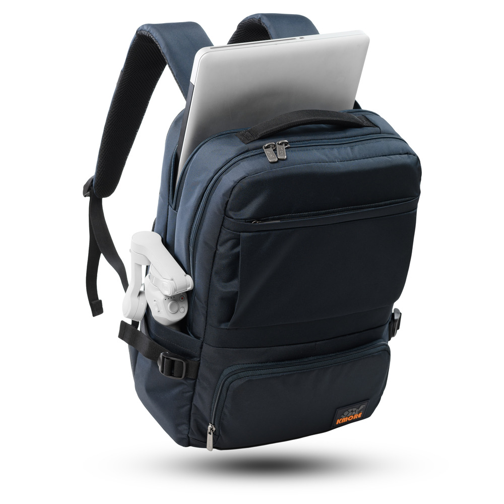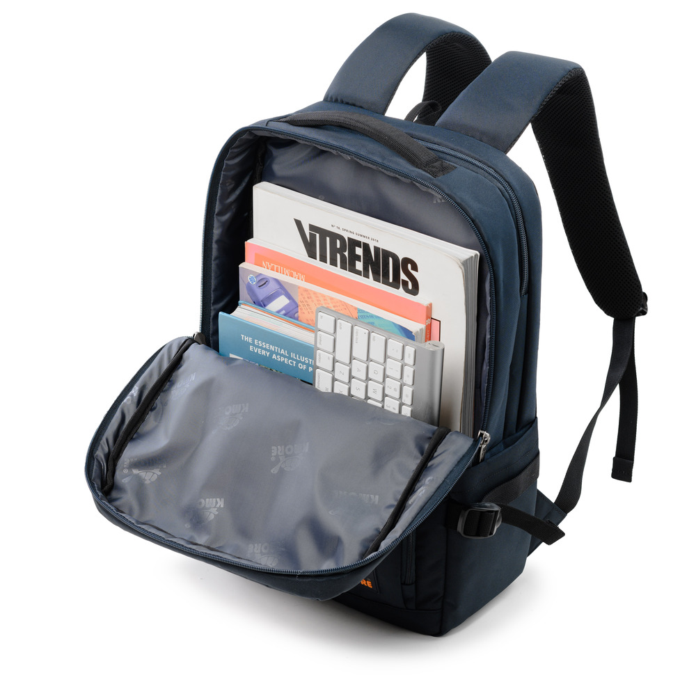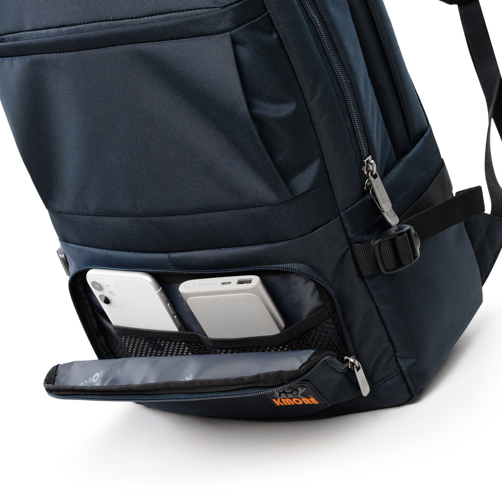 Mặt trước balo đính logo PVC biểu tượng thương hiệu KMORE..