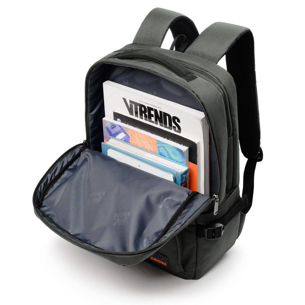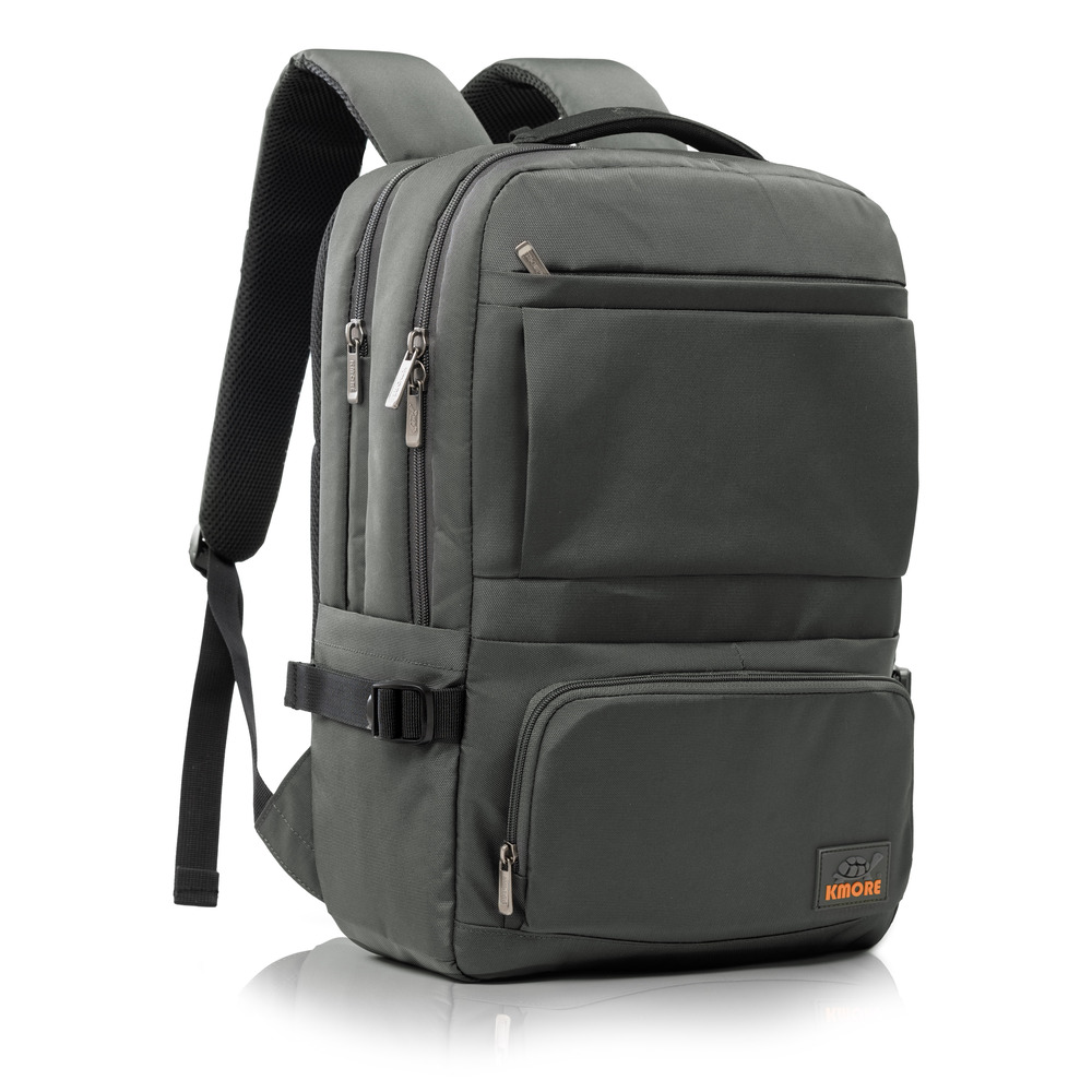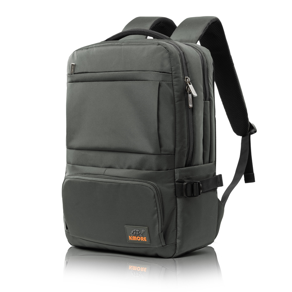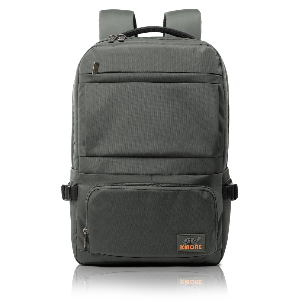 Mặt trước balo đính logo PVC biểu tượng thương hiệu KMORE..