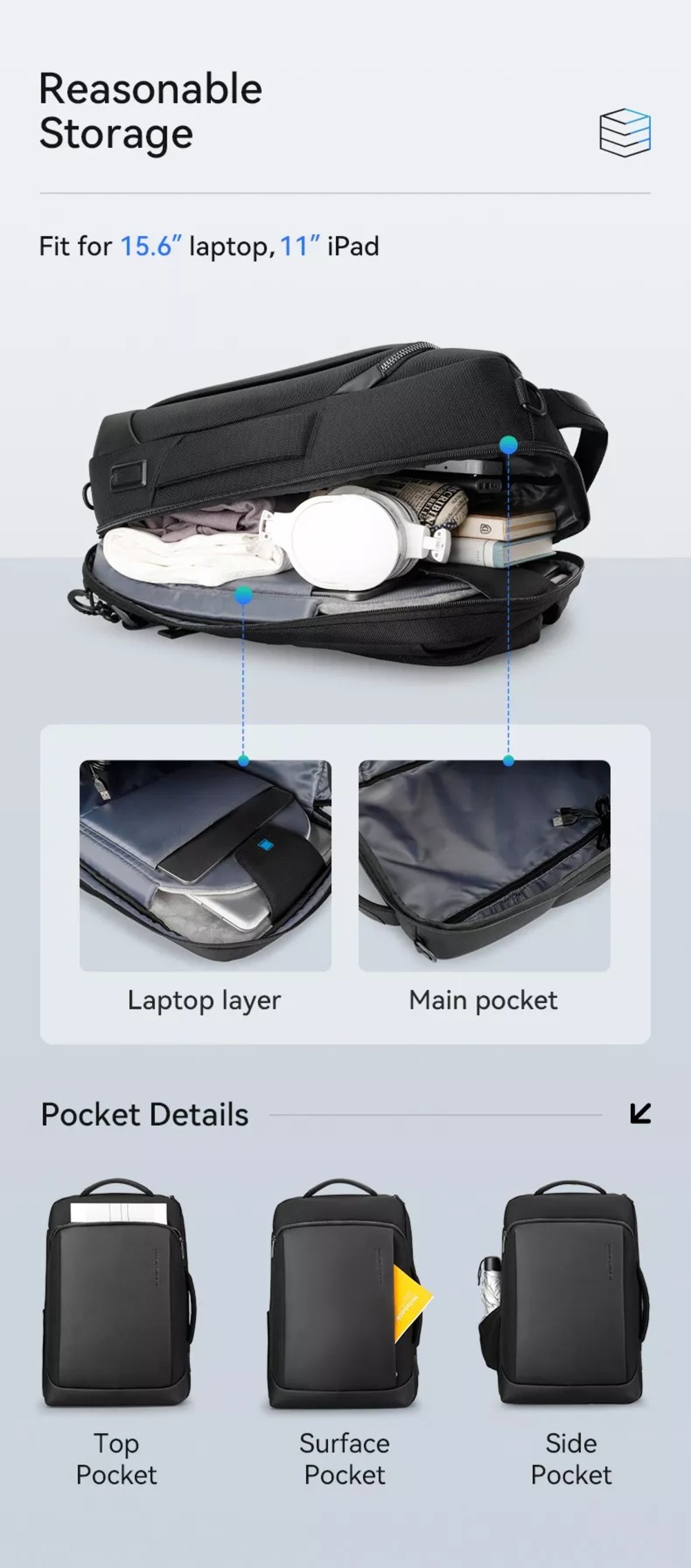- Ngăn Laptop: 15. 6 inch