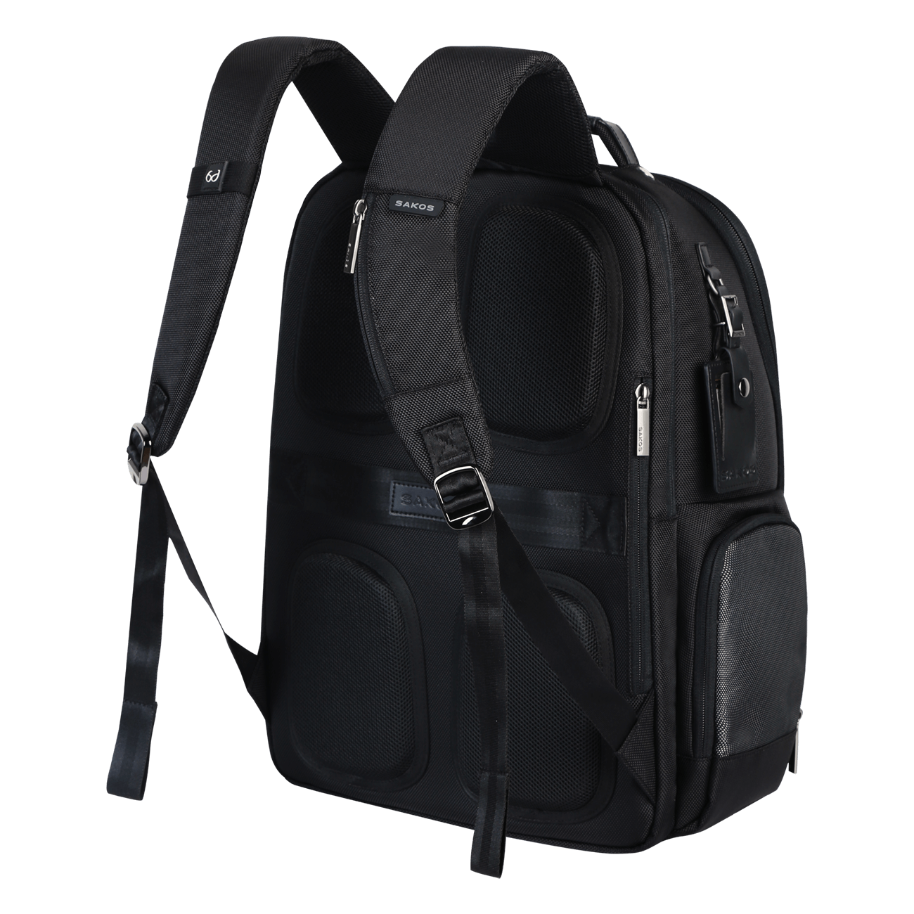 Sakos Impona đặt sự thoải mái lên hàng đầu. Quai đeo to bản với lớp mút êm ái giúp giảm áp lực lên vai và bảo vệ cột sống, trong khi đệm lưng dạng lưới thoáng khí hạn chế nóng lưng và mồ hôi khi mang lâu. Khóa kim loại cao cấp, không gỉ, vận hành mượt mà, mang đến cảm giác chắc chắn và tinh tế. Đặc biệt, đai gài phía sau cho phép cố định balo vào cần kéo vali, một tiện ích “vàng” cho những chuyến công tác, giúp giải phóng đôi tay, cân bằng trọng lượng và giữ balo đứng vững mọi lúc.