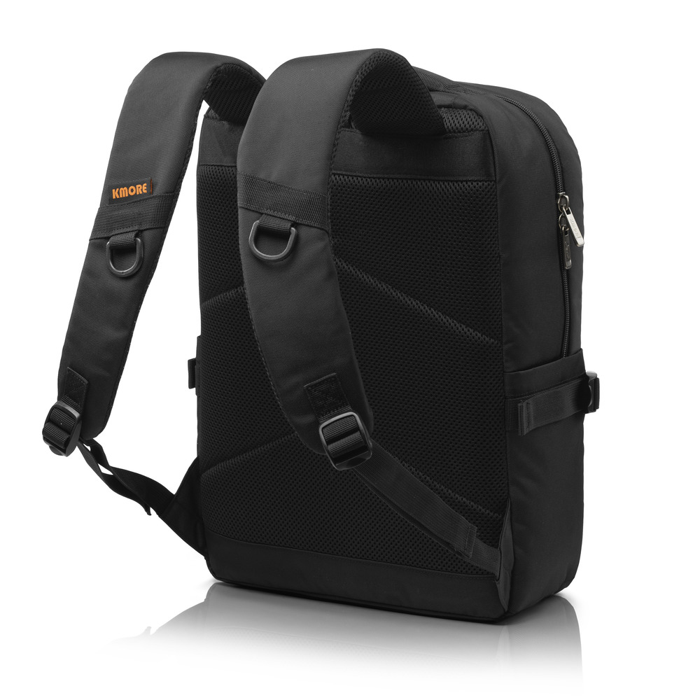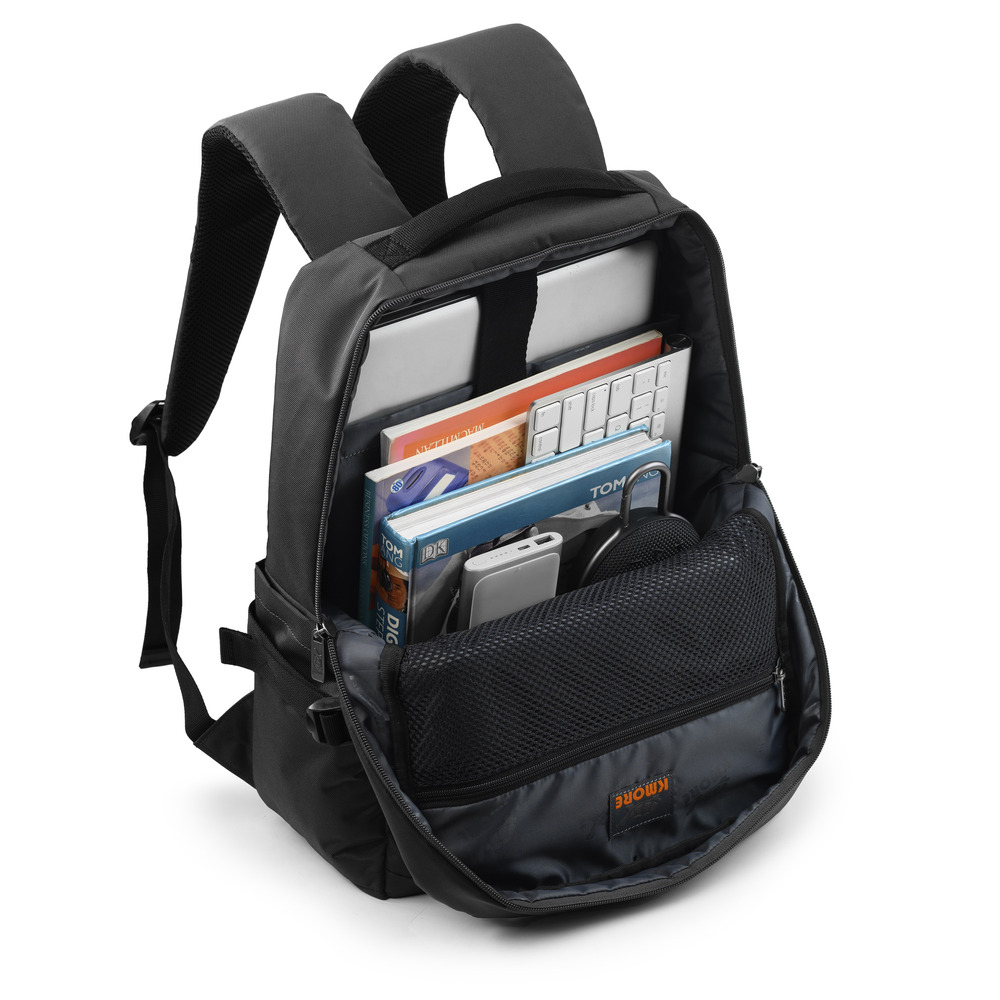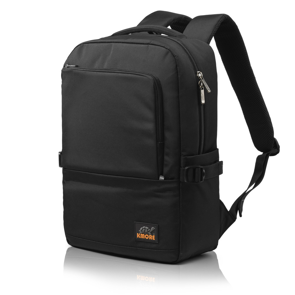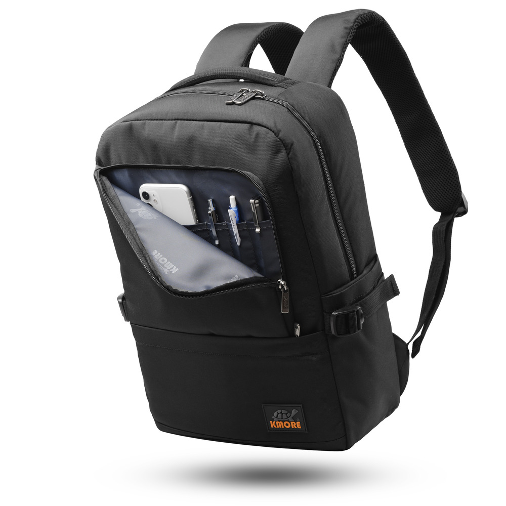 Mặt trước balo đính logo PVC biểu tượng thương hiệu KMORE..