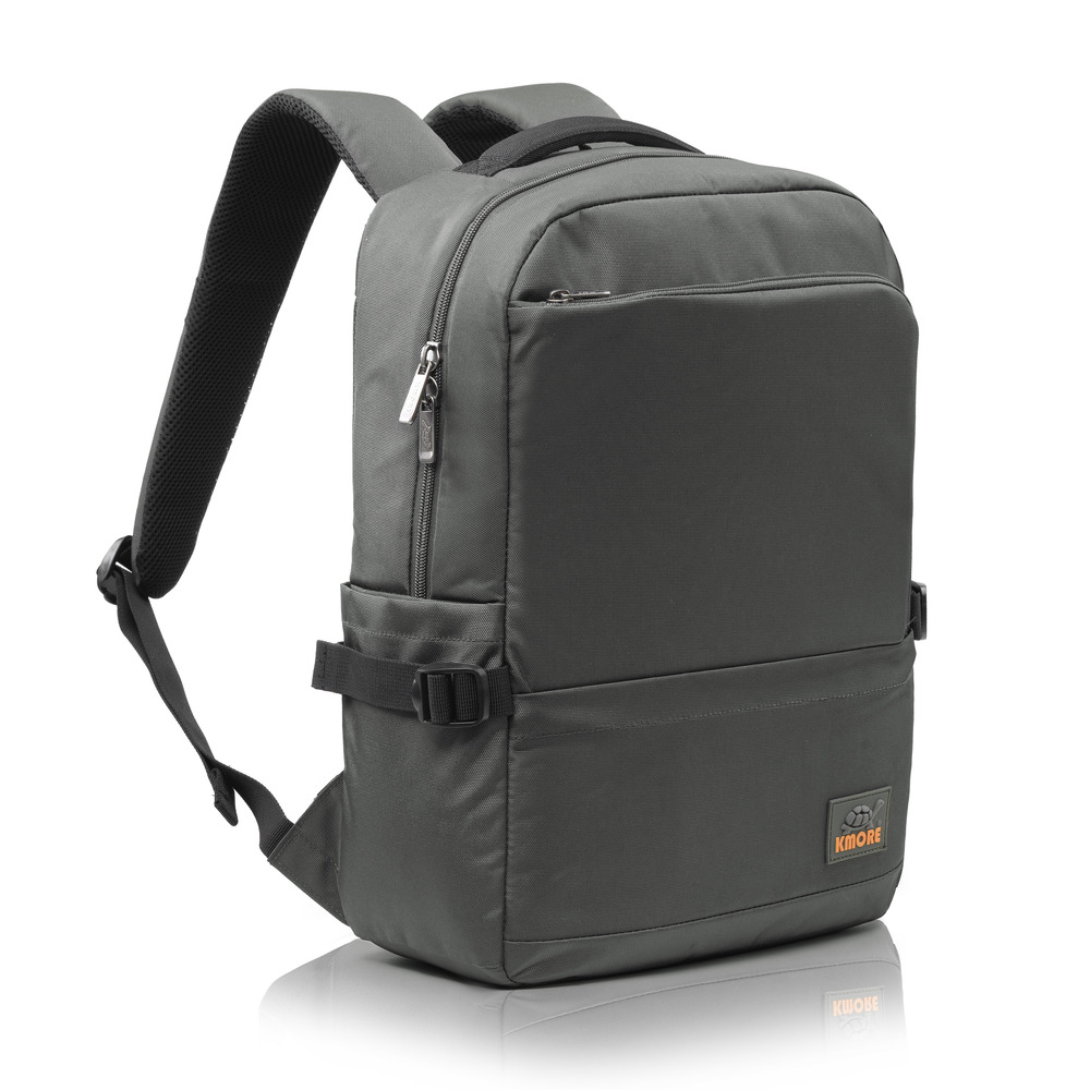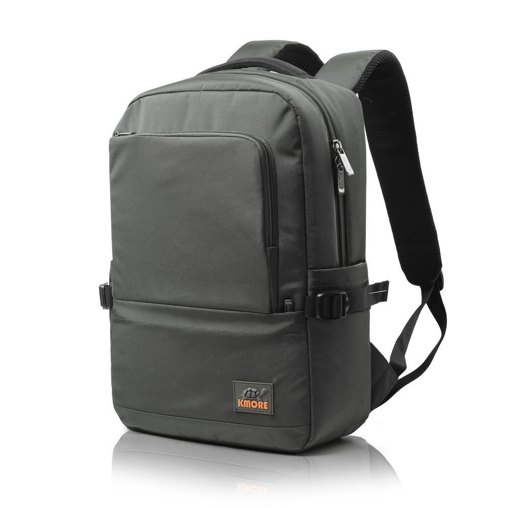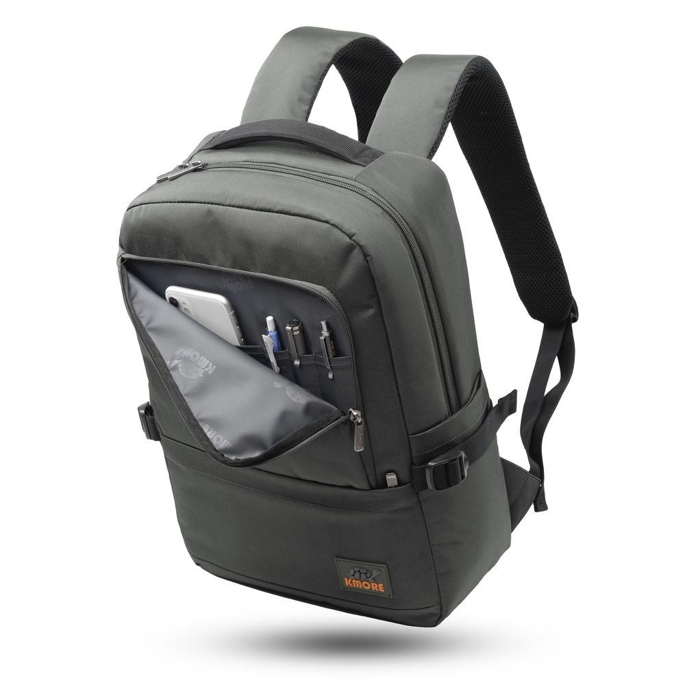 Mặt trước balo đính logo PVC biểu tượng thương hiệu KMORE..