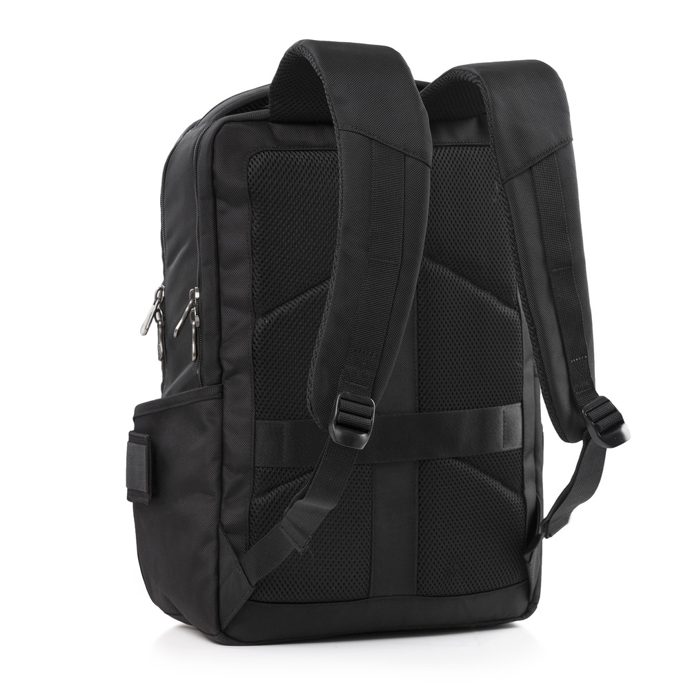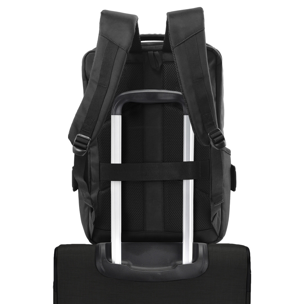 - Thân sau và quai đeo được thiết kế với mút EVA dày và êm trên nền Airmesh thoáng nhiệt giúp bạn cảm thấy thoải mái khi sử dụng. Quai xách đỉnh được thiết kế hài hoà ôm theo thân chính túi, nâng đều chiếc balo khi bạn xách.