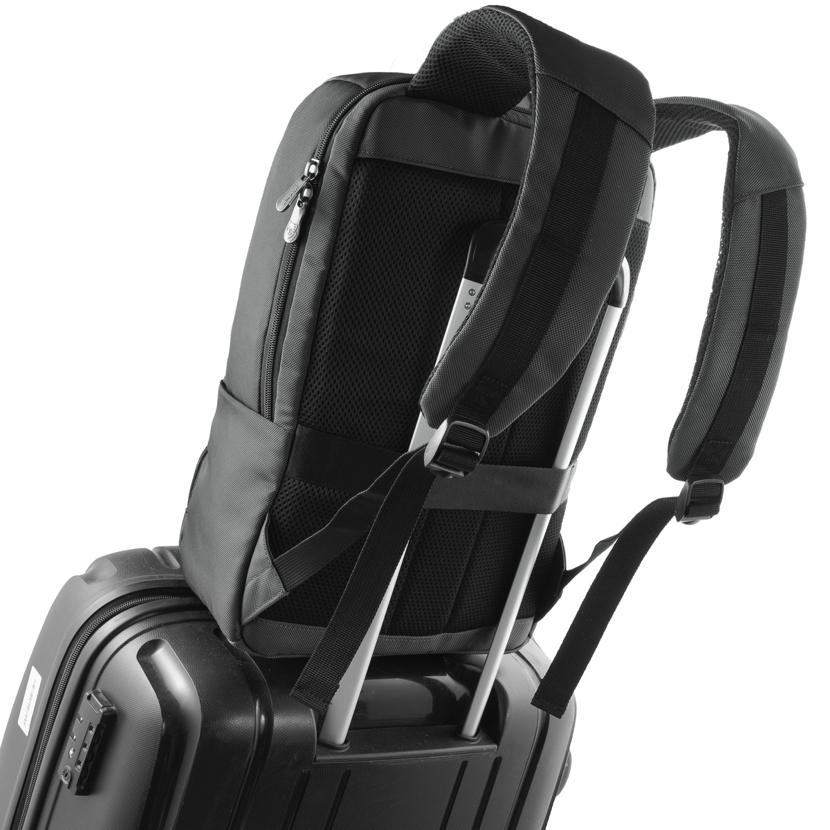 Phía sau cùng được thiết kế một vách để gắn vào tay kéo vali, giúp cho những chuyến công tác của bạn trở lên đơn giản và gọn nhẹ hơn.