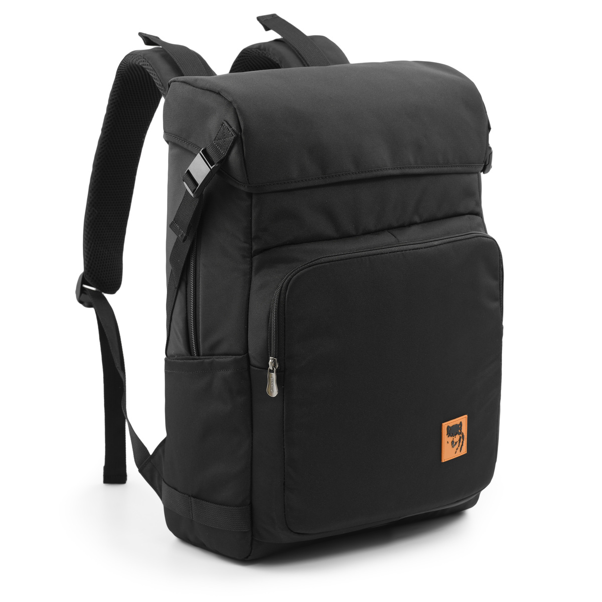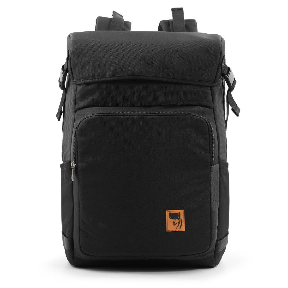 Mặt trước balo đính logo PVC chú sói biểu tượng thương hiệu MIKKOR nổi bật.