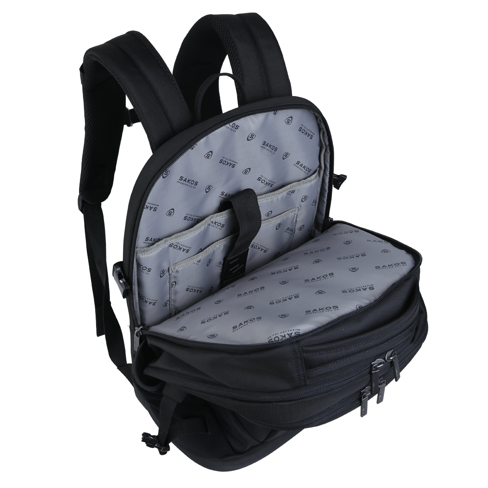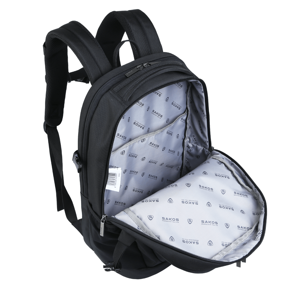 Balo laptop Sakos Brillar gồm 1 ngăn chính tích hợp ngăn laptop chống sốc cùng nhiều ngăn phụ tiện lợi: