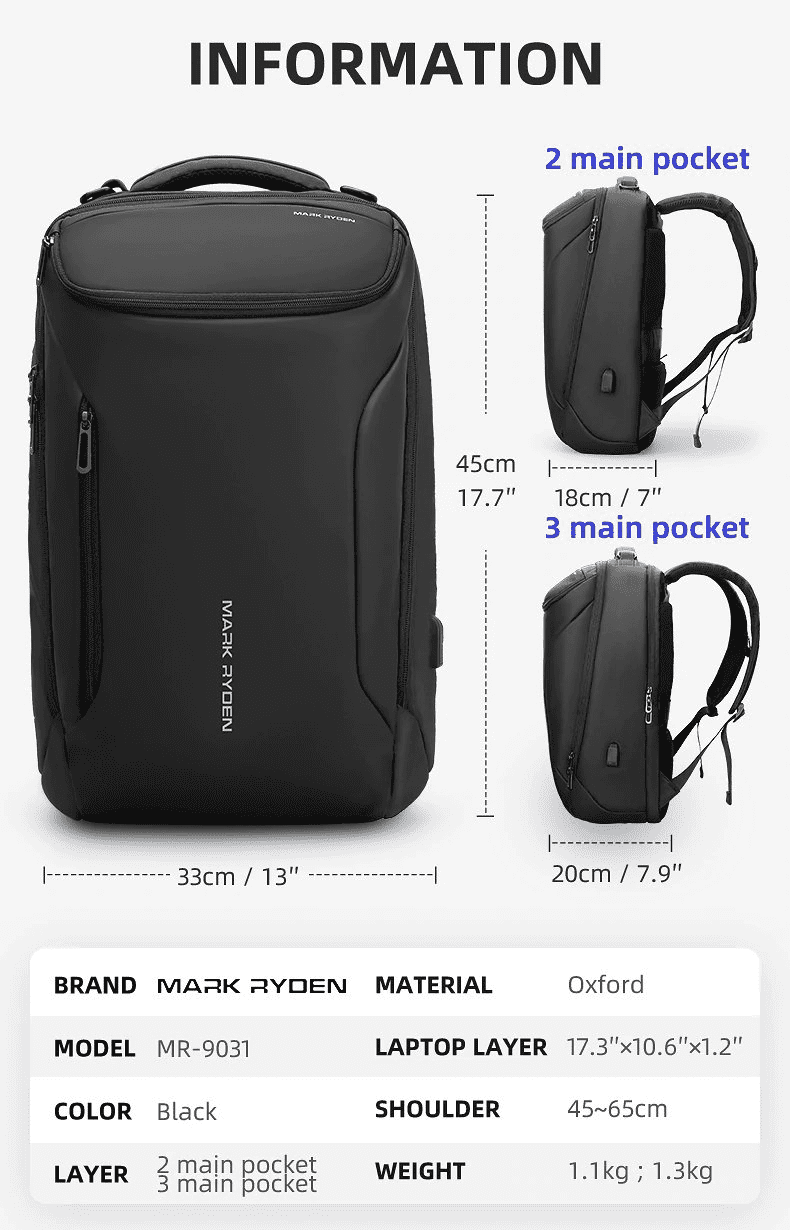 - Số Ngăn: 1 ngăn chính rộng + 1 ngăn Laptop riêng + rất nhiều ngăn phụ