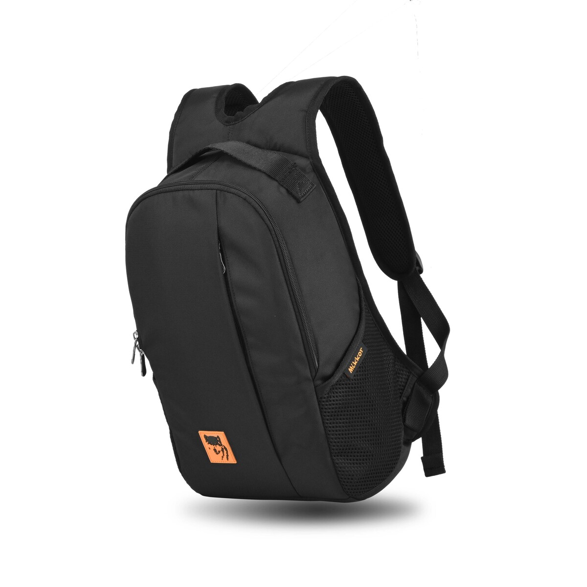 Mặt trước balo đính logo PVC biểu tượng thương hiệu MIKKOR nổi bật.