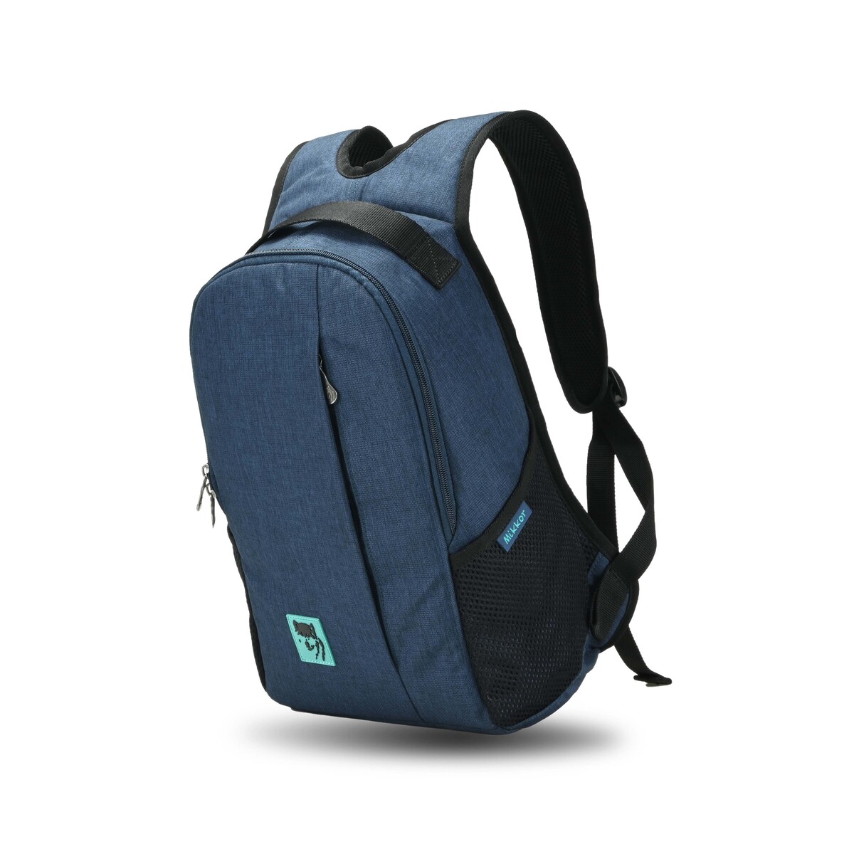 Mặt trước balo đính logo PVC biểu tượng thương hiệu MIKKOR nổi bật.