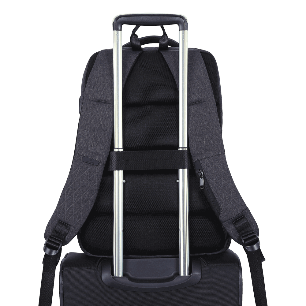 Tích hợp đai cố định ở phía sau balo để cố định vào cần kéo vali khiến mọi chuyến đi trở nên thật đơn giản.