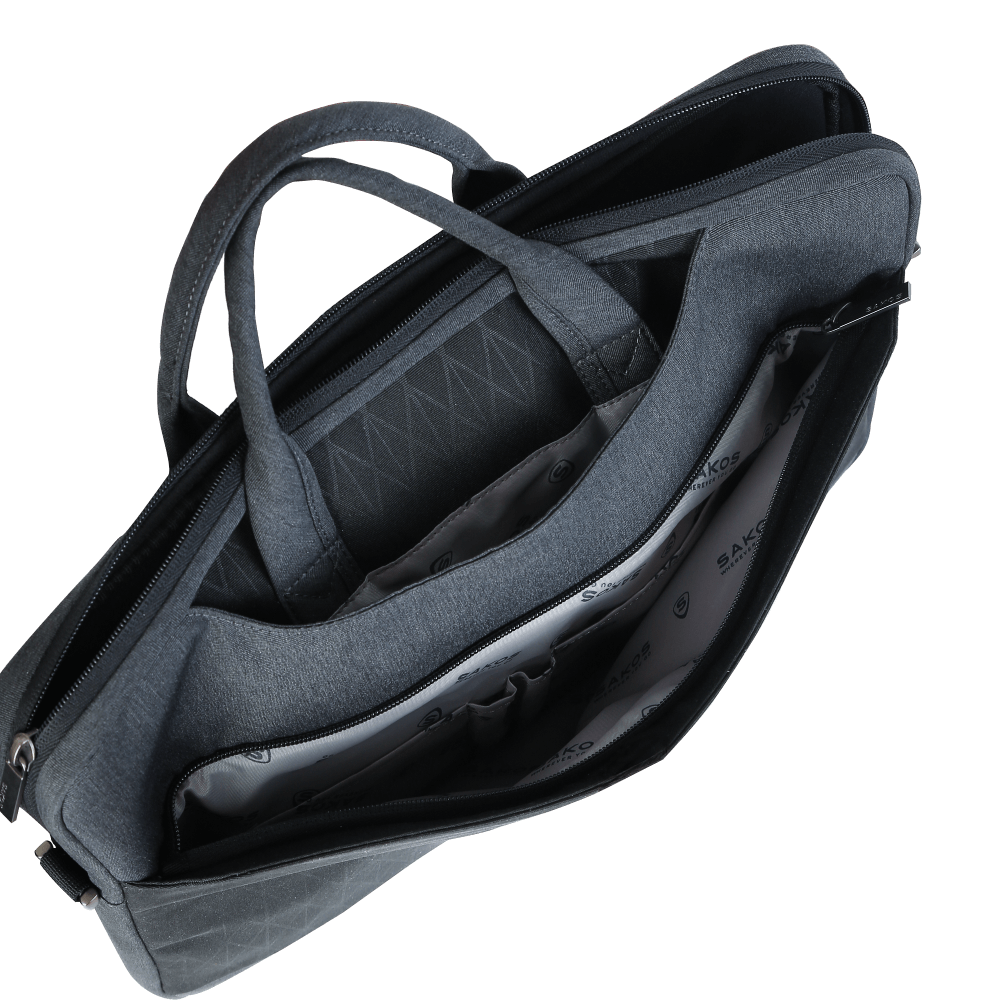Sakos Flexi thu hút người dùng bởi sự mỏng nhẹ và thiết kế hình hộp chữ nhật với viền bo mềm mại, tạo nên một diện mạo thanh lịch và hiện đại hòa quyện nét cổ điển. Hoa văn in trên bề mặt túi được thiết kế đơn giản nhưng tinh tế, là điểm nhấn làm tăng thêm vẻ sang trọng. Màu xám phối đen trung tính không chỉ mang lại diện mạo năng động cho người sử dụng mà còn giúp bạn dễ dàng phối đồ.