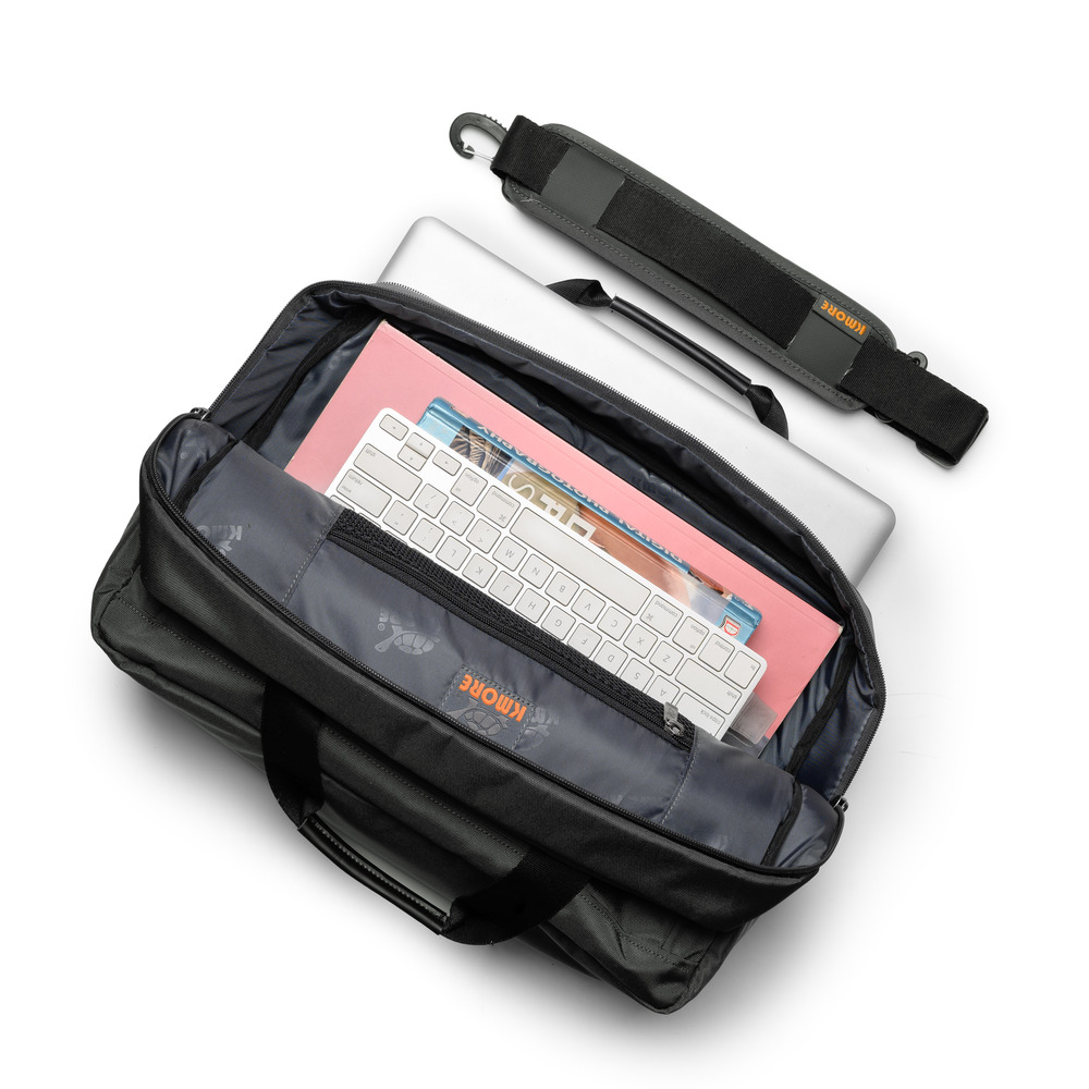 The Enzo Briefcase với 3 màu chủ đạo Black, Navy, Tan được thiết kế trên nền vải 900D Twill Polyester with PU&WR , PU/2T cùng logo thương hiệu Kmore độc đáo.