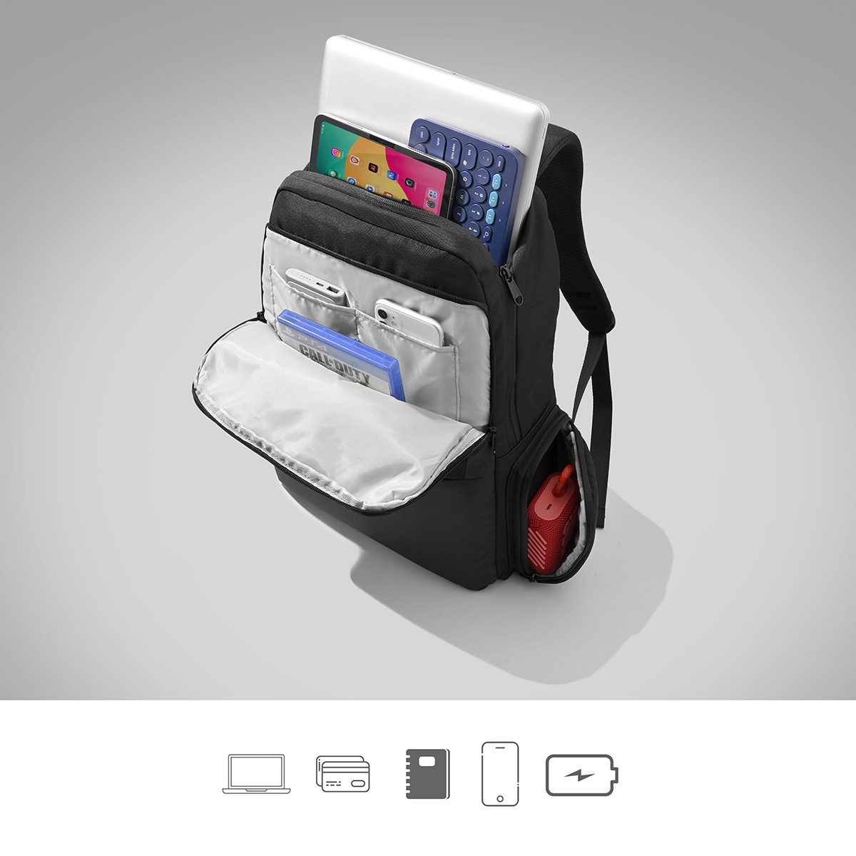 Ngăn chứa khoa học: Balo có nhiều ngăn chứa tiện lợi, giúp người dùng dễ dàng sắp xếp và bảo quản đồ đạc. Ngăn chính rộng rãi có thể đựng laptop, sách vở và các vật dụng cá nhân khác.