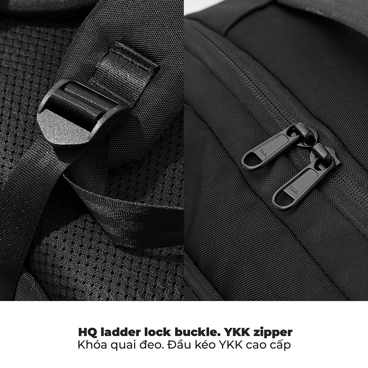 - Số Ngăn: Ngăn chính sức chứa lớn (có ngăn chống sốc Laptop) + Ngăn đựng phụ kiện + 1 Ngăn ẩn + 2 ngăn bên hông