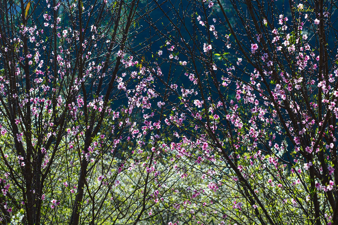 Bên cạnh hoa mơ, mận trắng thì hoa đào rừng cũng đã nở rộ hết cỡ dưới tiết trời ấm áp.