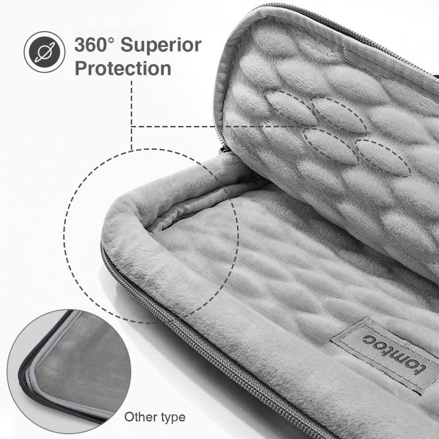 Sử dụng công nghệ sáng chế tiên tiến của Hoa Kỳ CornerArmor™ trang bị phía dưới túi chống sốc một lớp đệm bảo vệ 360* xung quanh vành túi một cách an toàn như một túi khí xe hơi. Đây có lẽ là điều mà khách hàng tìm đến Tomtoc 360* Protective nhiều nhất bởi kết cấu chống sốc hoàn hảo giúp máy tính hoàn toàn có thể được bảo vệ khi sảy ra vấn đề va chạm .