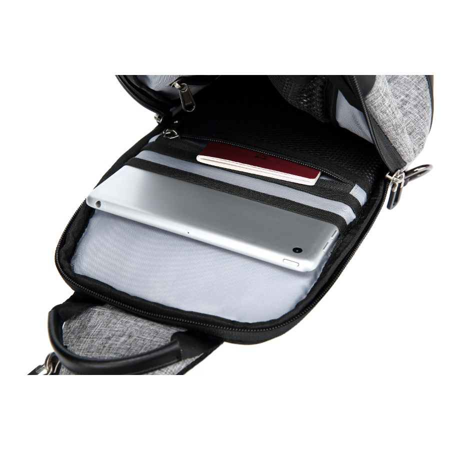 Thiết kế tiện dụng đa năng bao gồm 1 ngăn chính lớn có ngăn iPad riêng biệt, đựng thêm được điện thoại di động, ví, chìa khóa, bình nước nhỏ.
