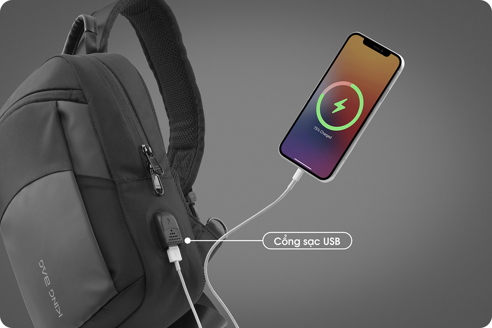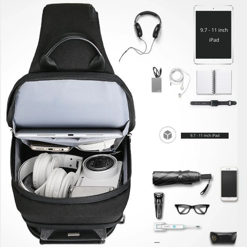 Túi Đeo Chéo Đa Tiện Ích, Tích Hợp Cổng Sạc USB, Fix iPad 9.7-11 inch KINGBAG JULIUS III - Black
