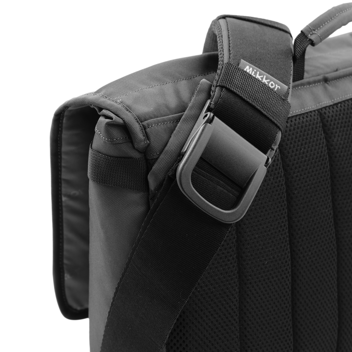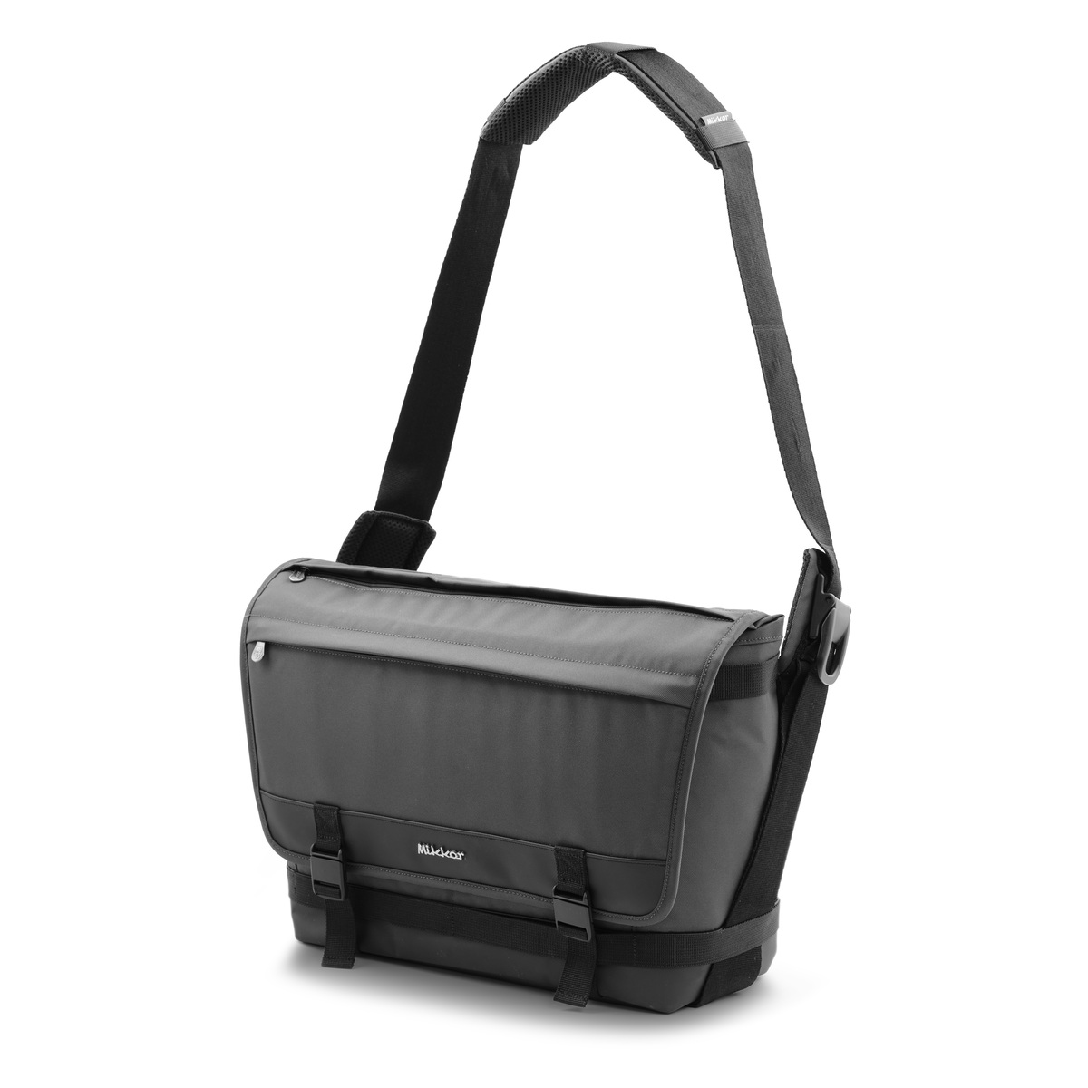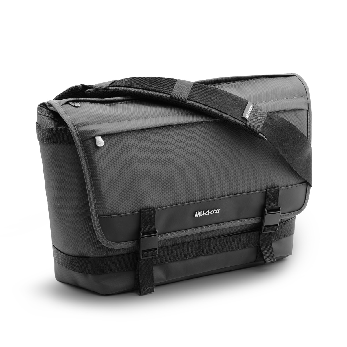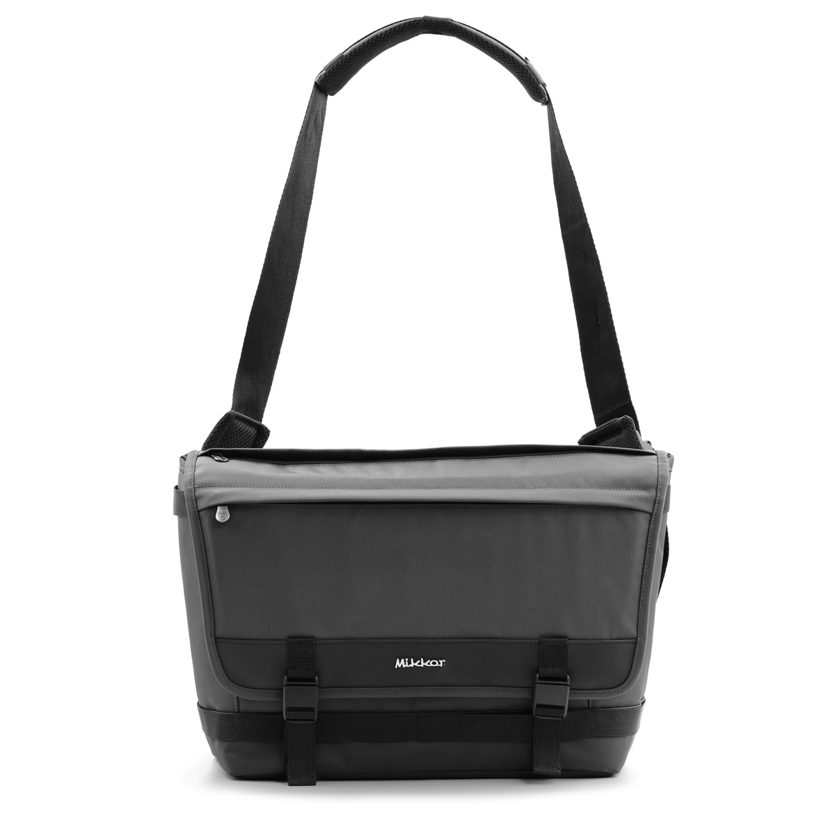 Mặt trước The Felix Messenger Bag đính logo kim loại thương hiệu MIKKOR nổi bật.