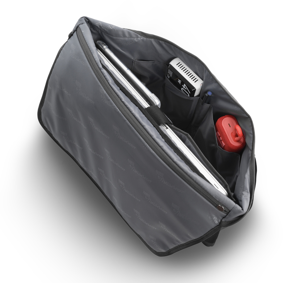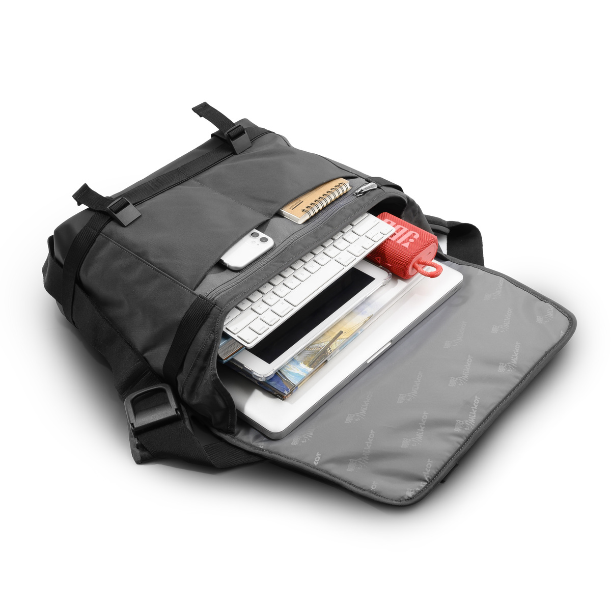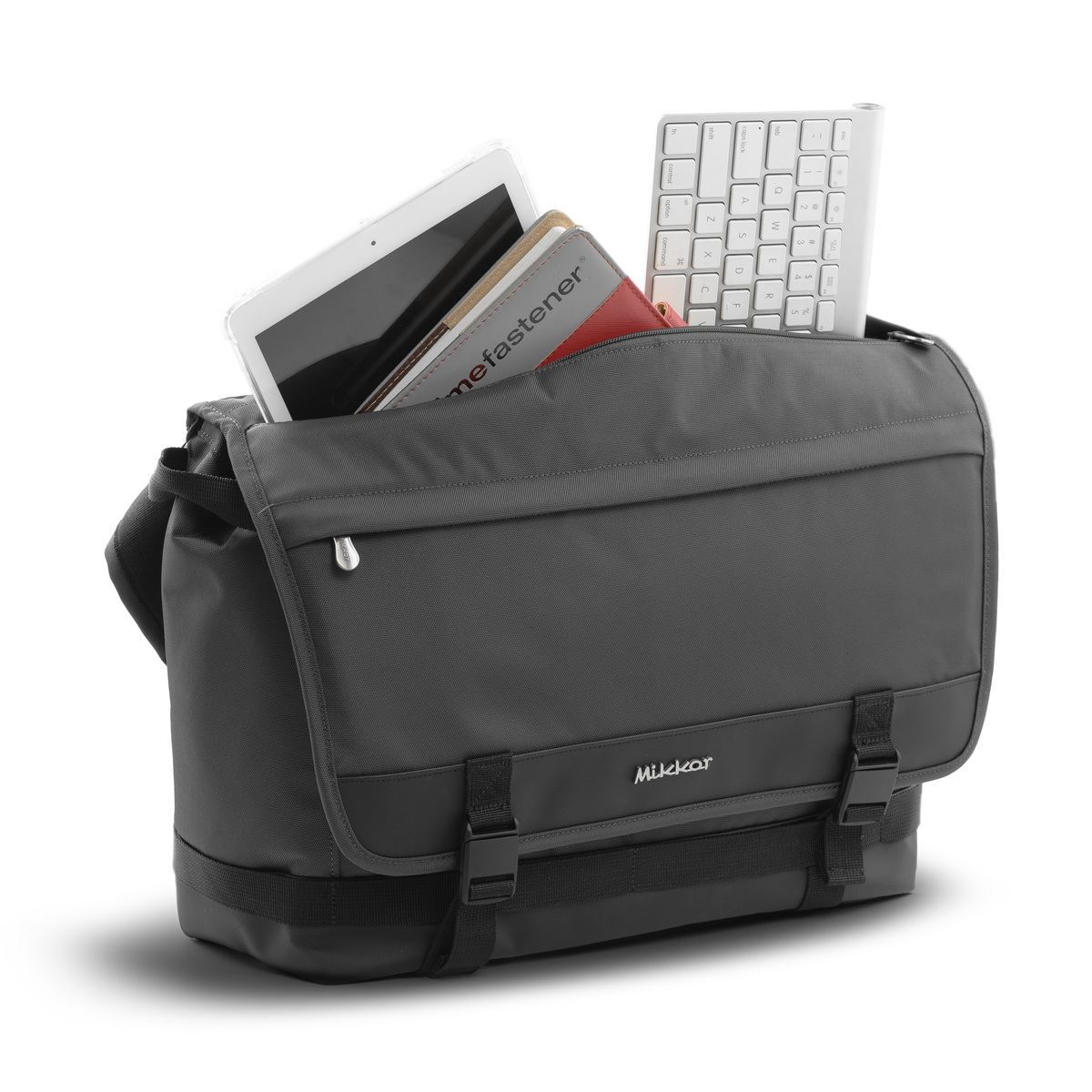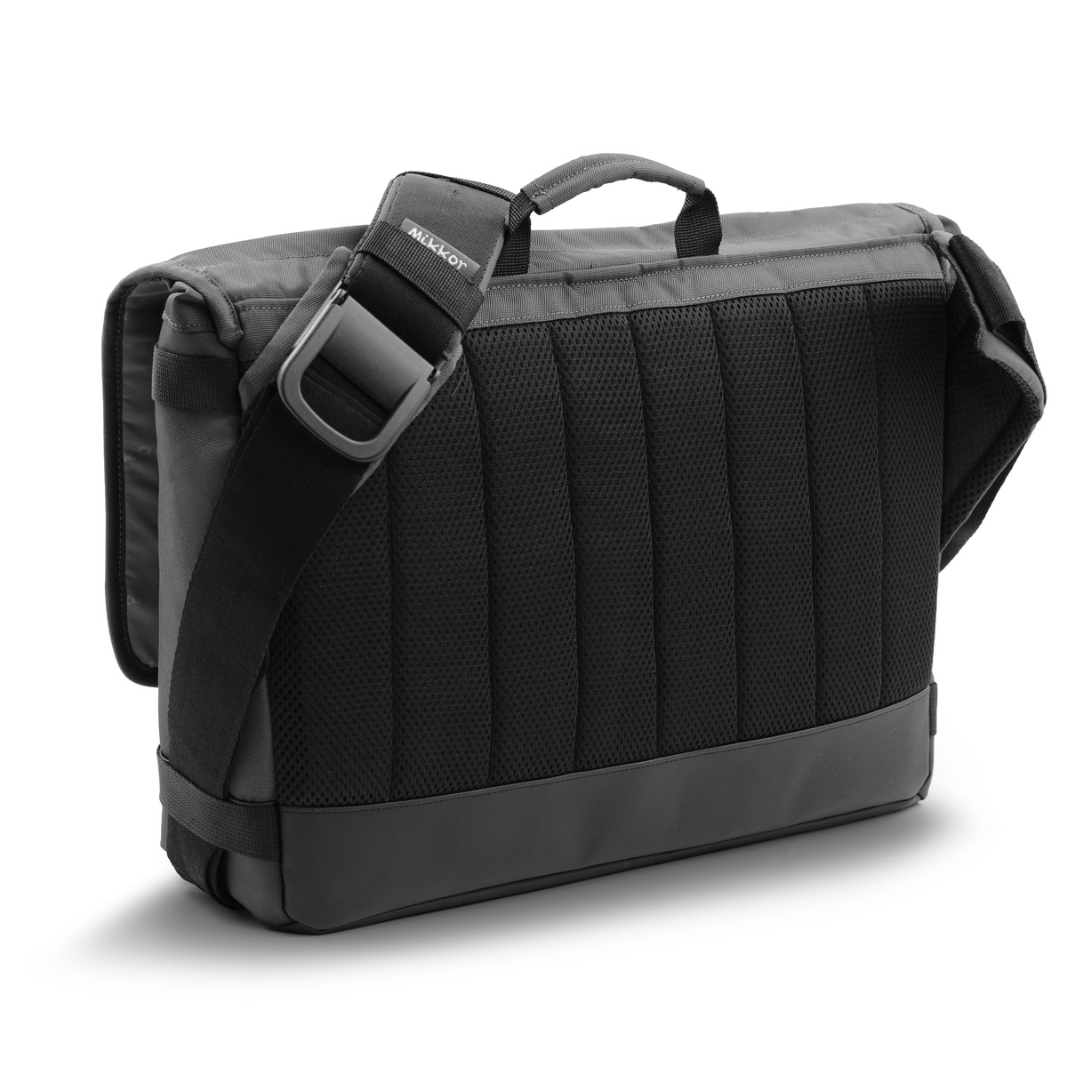 Mặt trước The Felix Messenger Bag đính logo kim loại thương hiệu MIKKOR nổi bật.